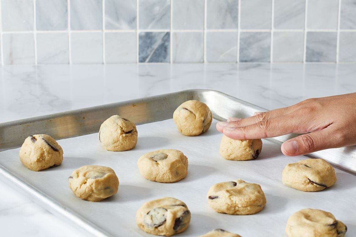 Freeze the dough. If you’re working ahead or don’t want to be stuck with an entire batch of cookies, pop the dough in the freezer. For drop cookies that you’ve formed with a disher, as described above, allow them to freeze individually on a lined baking sheet before transferring to an airtight bag or container.