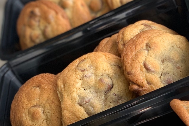 The cookies are always baked the day of travel, whether it’s Miller or Rondo in the kitchen. They're soft and laced with milk chocolate, usually made by Guittard. Miller developed the recipe while at a previous job — cooking for Kobe Bryant and his family.