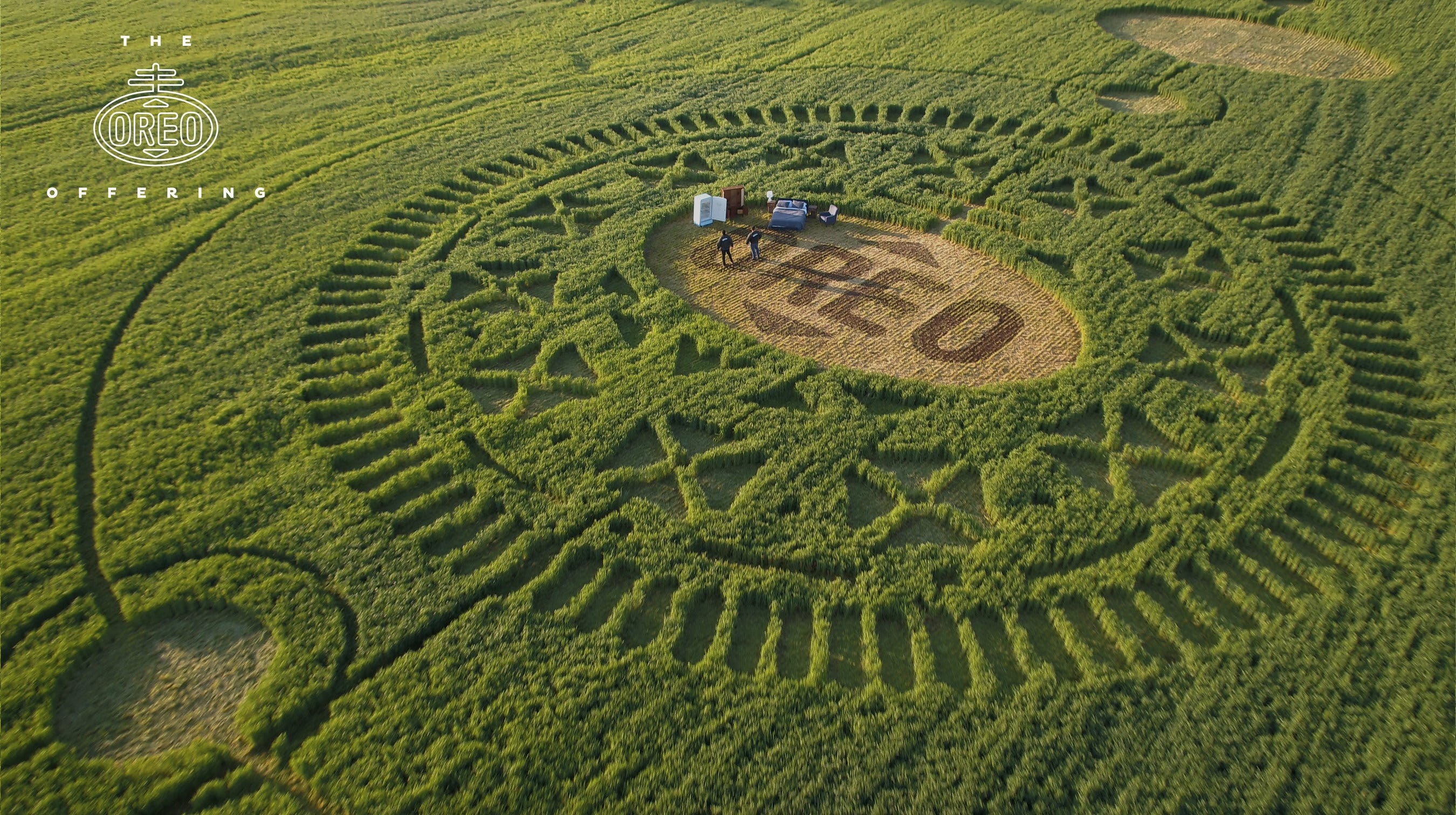 The company also shared a photo of a wheat field in Kansas that had an Oreo cookie-styled crop circle in the middle of it.